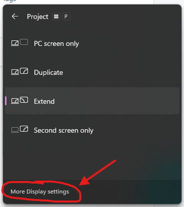 - Either select an option or click 'More display settings' at the bottom of the window that shows up for more options: